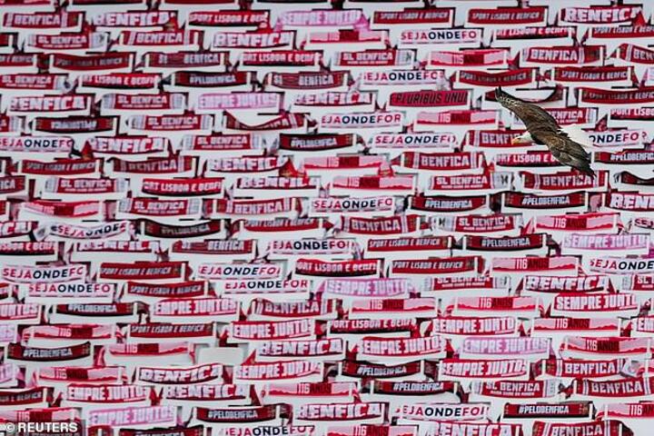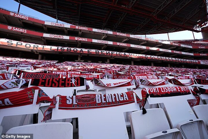 Thousands of scarves with the club's red and white colours were placed on the seats at the Stadium of Light to represent Benfica fans as the club returned to action a day after rivals Porto lost 2-1 at Famalicao in their first game back.